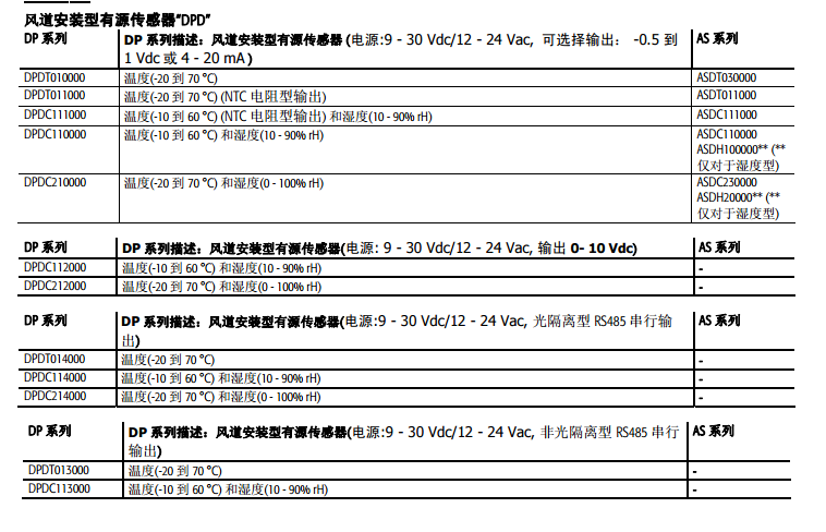 | 卡樂風道安裝式DPD系列溫濕度傳感器 |